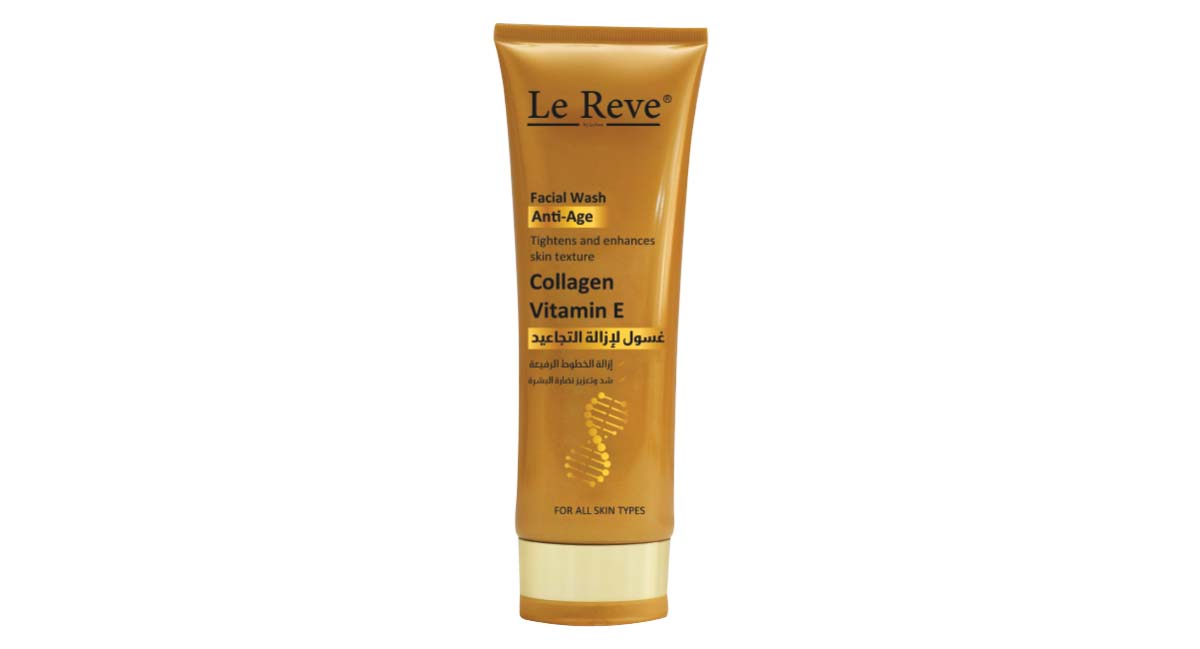 “Le Reve” Anti-Aging Facial wash is free of damaging chemicals and rich in collagen, vitamin E and arginin PCA to tighten and enhance skin density, leaving it younger and smoother.