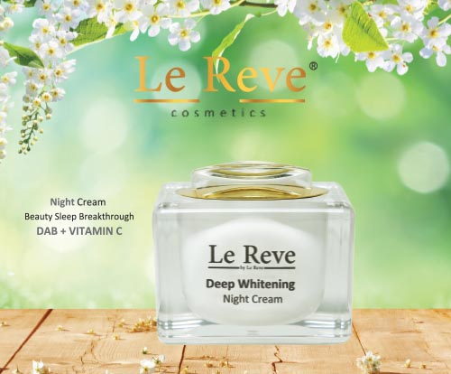 “Le Reve” Whitening Cream is an innovative formula for whitening and brightenig skin tones, thanks to the DAB active in combination with Vitamin C. This is an effective formula for all skin types and specially for the dark, pigmented and tired skin. Vitamine C will break down the melanin, as well as prevent hyperpigmentation by inhibiting the Enzyme Tyrosinase.