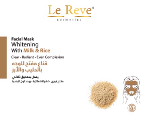 “Le Reve” whitening with milk and rice face mask whitens the skin, and lightens dark spots leaving your skin radiant and unifying shades. Feel luxurious and enjoy a relaxed spa experience at home.